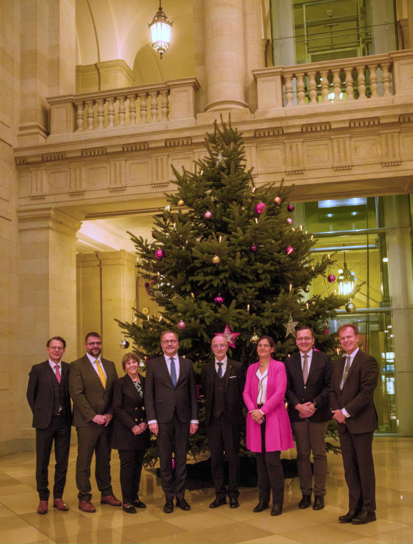 Anfang Dezember 2025 besuchte eine Delegation der Kurie von Ungarn unter Leitung ihres Präsidenten Prof. Dr. András Zs. Varga das Bundesverwaltungsgericht. Der Besuch des höchsten ungarischen Gerichts diente dem Austausch über Fragen des Verwaltungs- und Verwaltungsprozessrechts. Es war das fünfte Arbeitstreffen dieser Art. In den Fachgesprächen tauschten sich Richterinnen und Richter beider Gerichte unter anderem über die Anwendung von Digitalisierung und künstlicher Intelligenz in Verwaltungsprozessen, das Recht auf Asyl und aktuelle Herausforderungen für die Rechte von Flüchtlingen, Verbraucherschutzverfahren im ungarischen und deutschen Recht sowie aktuelle Entwicklungen im Versammlungsrecht aus.