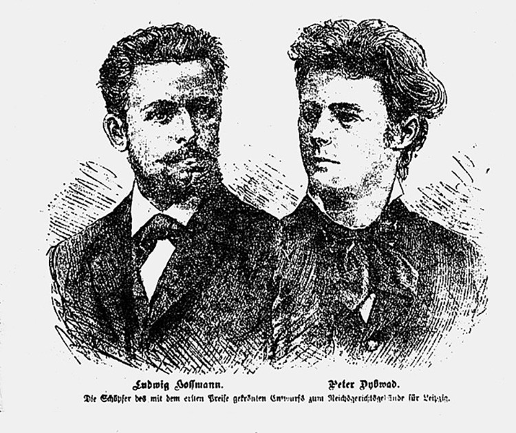 A total of 119 designs are submitted from Germany, Austria and Switzerland in the competition to construct the Imperial Court of Justice building. The eleven-strong competition jury unanimously endorses the plans by the architects Ludwig Hoffmann (1852–1932) and Peter Dybwad (1859–1921). Hoffmann is then commissioned by the Office for National Justice to complete the plans and oversee construction.