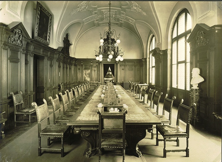 Peter Dybwad is born in Christiania (now Oslo), Norway, on 17 February 1859. He studies at the Building Academy in Berlin from 1878 to 1882, becoming acquainted with Ludwig Hoffmann during this period. It is the start of a lifelong, close friendship. Peter Dybwad is also involved in the construction and completion of the Imperial Court of Justice building. He remains loyal to the Court, sitting on the Technical Advisory Board as consultant for structural issues until 1920. He sets up business as freelance architect in Leipzig once the Imperial Court of Justice building is finished, and is responsible for many residential and commercial properties, including businesses on Burgstrasse 1–5 and on Martin-Luther-Ring 20, as well as the Meyer & Co. bank on Thomaskirchhof 20, until his death on 13 October 1921.